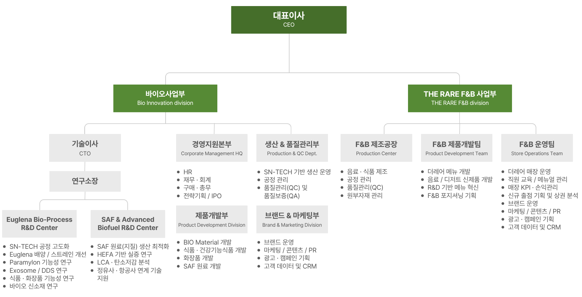 유일바이오텍은 유글레나를 출발점으로 다양한 미생물과 산업 소재로 확장 가능한 바이오 파운드리(Bio Foundry) 기업으로 진화하며, 인류의 건강과 지구 환경에 기여함과 동시에 바이오 산업의 생산 패러다임을 근본적으로 혁신하는 것을 목표로 하고 있습니다.